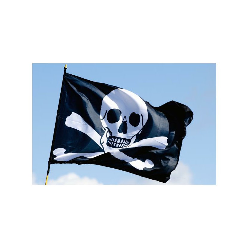 Pirátská vlajka o rozměru 40 x 60 cm. Upevnění: na lanko stožáru, karabinky. Vlajka je vytištěna na kvalitní polyesterovou vlajkovinu technologií sítotisku. Použitý materiál a technologie zaručují odolnost vlajek proti UV záření, stálobarevnost, brilanci barevných odstínů, vysokou stabilitu v povětrnosti a snadnou údržbu. Vlajky mají lesklý povrch a rychle se vysušují – „vlají i v dešti“.